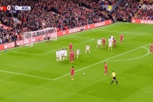 体育资讯11月02日讯 英超第10轮利物浦vs维拉第32分钟,加克波内切造禁区线前任意球,索博斯洛伊主罚任意球打后点,被大马丁扑出!